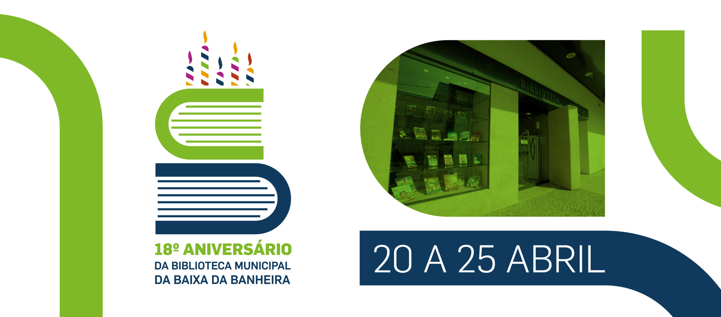 A Biblioteca Municipal da Baixa da Banheira comemora 18 anos. De 20 a 25 de abril participe nas várias atividades que este equipamento municipal preparou para os leitores, e, no dia 25 de abril pelas 16 horas venha cantar os parabéns à Biblioteca. Conheça o programa:
