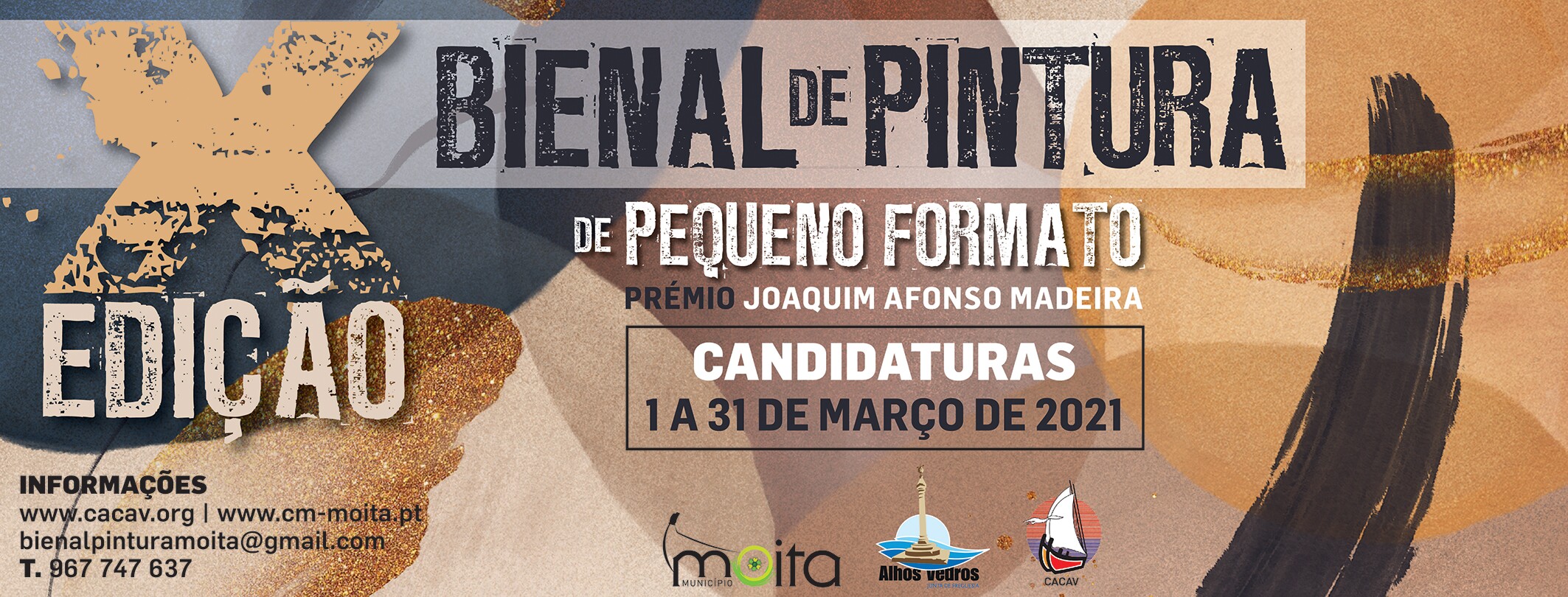 2021/02/09As inscrições para a X Bienal de Pintura de Pequeno Formato – Prémio Joaquim Afonso Madeira decorrem de 1 a 31 de março. Esta iniciativa, organizada pela Câmara Municipal da Moita, Junta de Freguesia de Alhos Vedros e CACAV – Círculo de Animação ... -