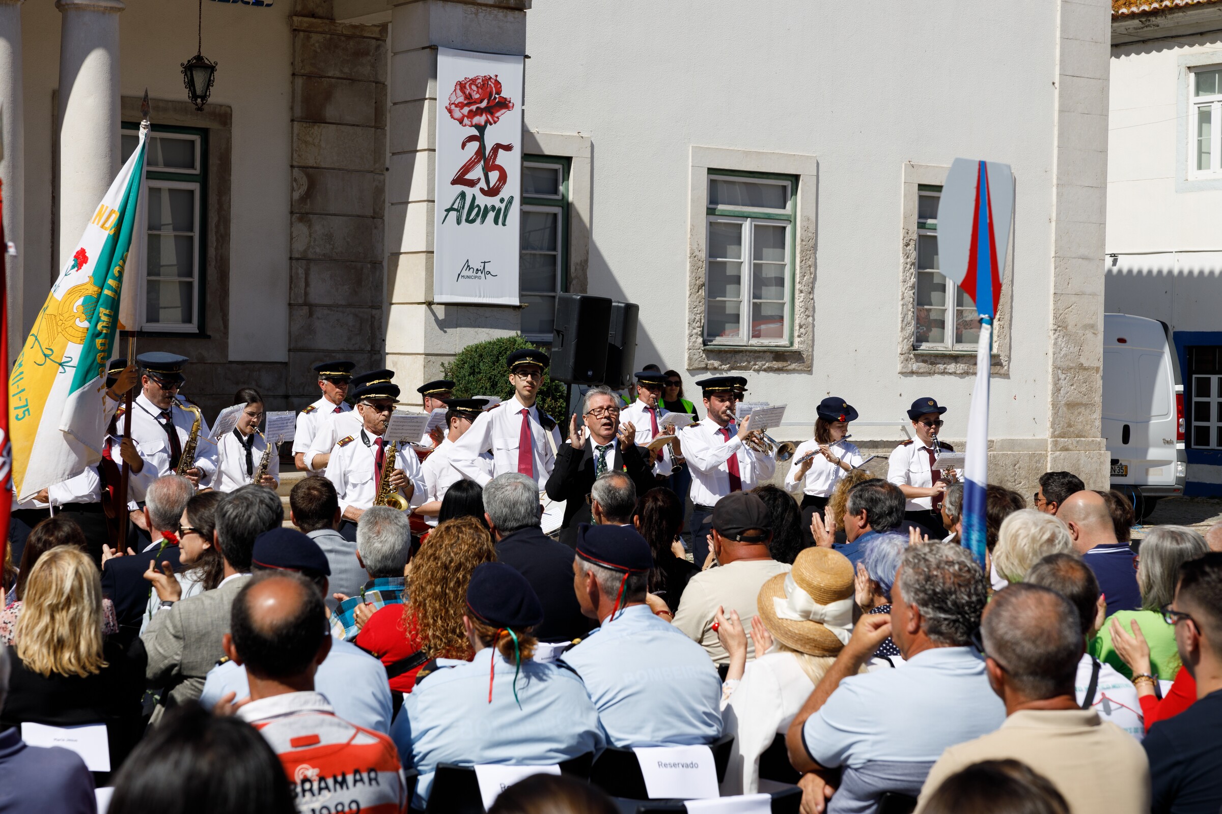 A cerimónia teve início com a atuação das Bandas Musical do Rosário e Filarmónica da Moita. Logo após esse momento, o Presidente da Assembleia Municipal da Moita, António Duro, deu por aberta a sessão, onde que fez questão de afirmar a importância da comemoração deste dia a nível nacional. “Celebramos hoje mais um aniversário do 25 de abril de 74, a um ano para esta efeméride atingir os seus 50 anos. Sempre este concelho celebrou efusivamente e continua a celebrar de muitas formas e com as mais diversas atividades de cultura, desporto, entretenimento, associativismo e político. Acrescentámos nesta Assembleia Municipal a Sessão Solene de homenagem a esta data histórica que mudou a nossa vida e a vida das gerações futuras. É a segunda sessão solene de homenagem ao 25 de abril de 74 neste mandato”, afirmou António Duro no início da cerimónia.