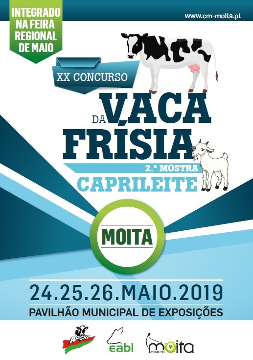Integrado na centenária Feira Regional de Maio, o XX Concurso da Raça Holstein Frísia realiza-se nos dias 24, 25 e 26 de maio, no Pavilhão Municipal de Exposições, na Moita.