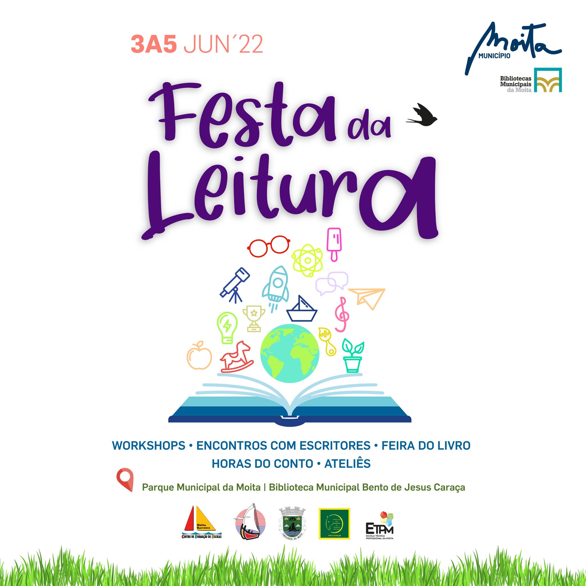 Nos próximos dias 3, 4 e 5 de junho, no Parque Municipal da Moita, entre as 10h e as 19h, a magia da leitura invade o parque.