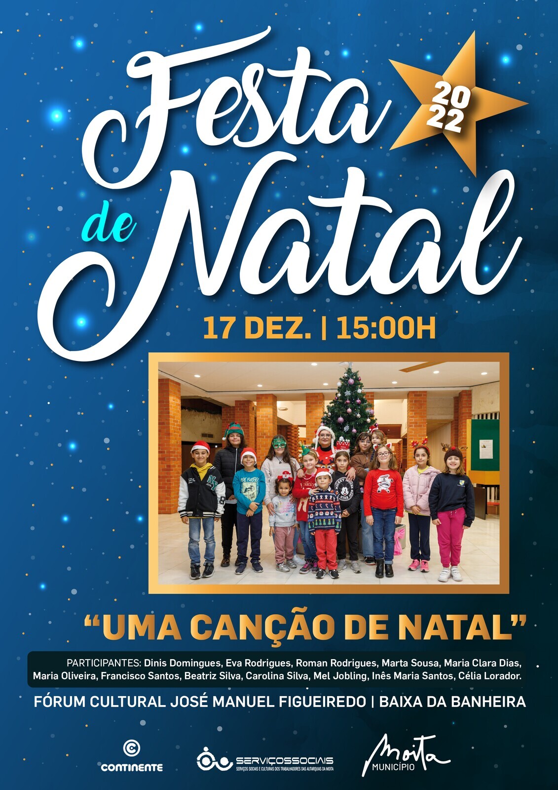 Informamos que a tradicional Festa de Natal, destinada aos filhos dos trabalhadores das Autarquias do Município da Moita, realiza-se no sábado, dia 17 de dezembro, pelas 15h00, no Fórum Cultural José Manuel Figueiredo, na Baixa da Banheira.